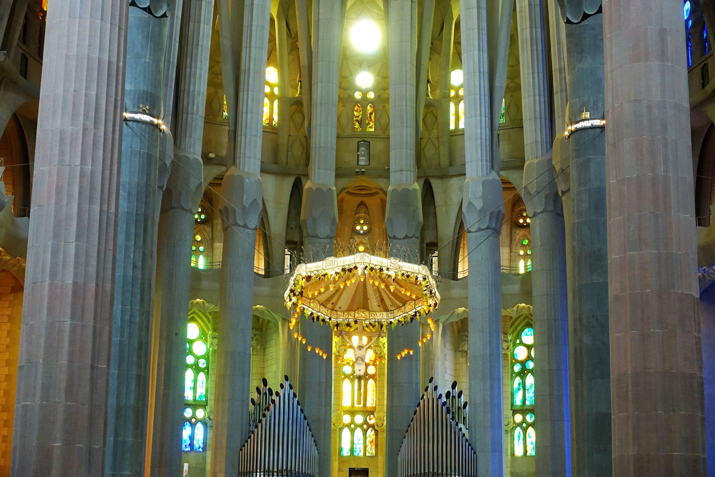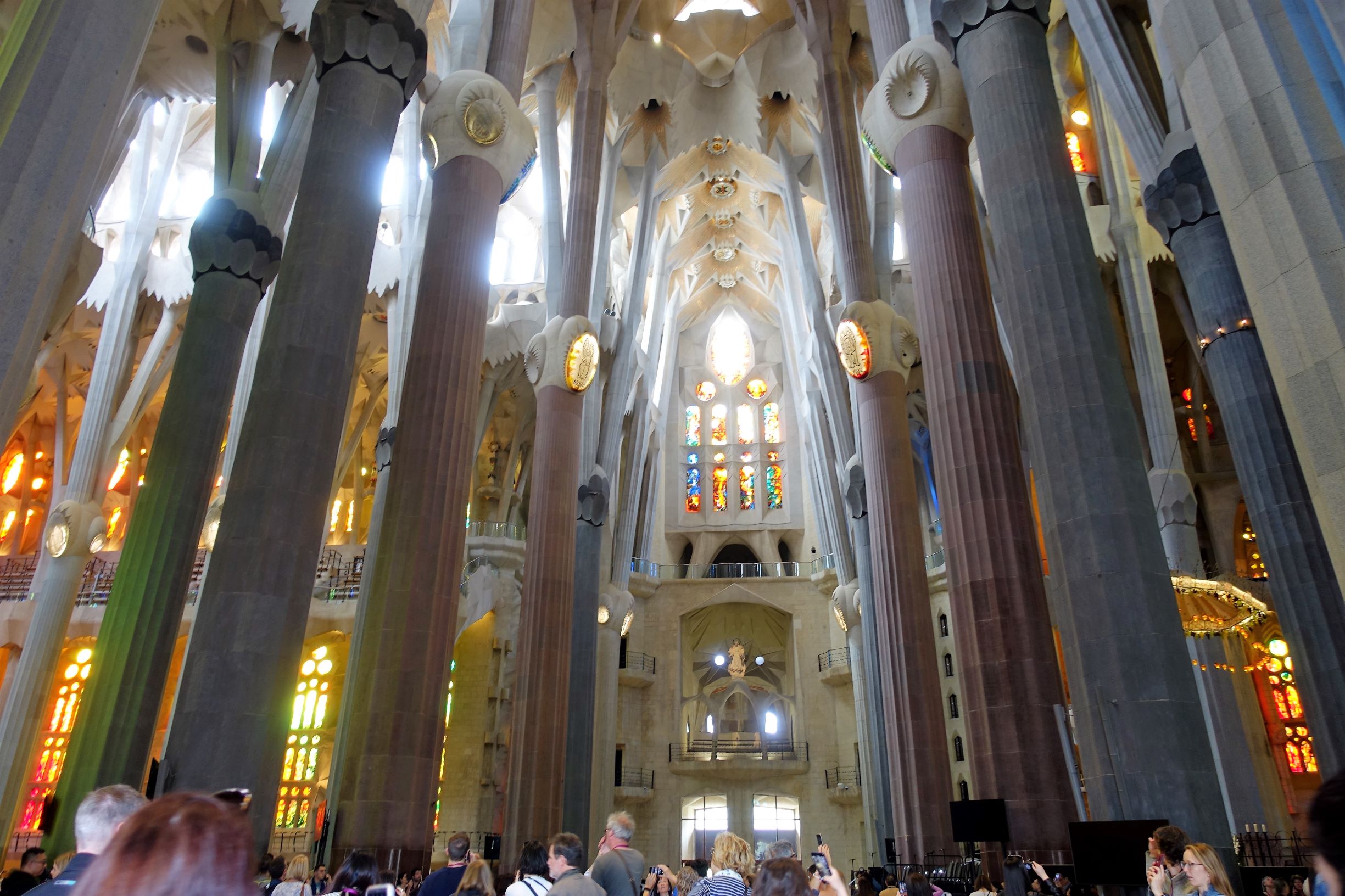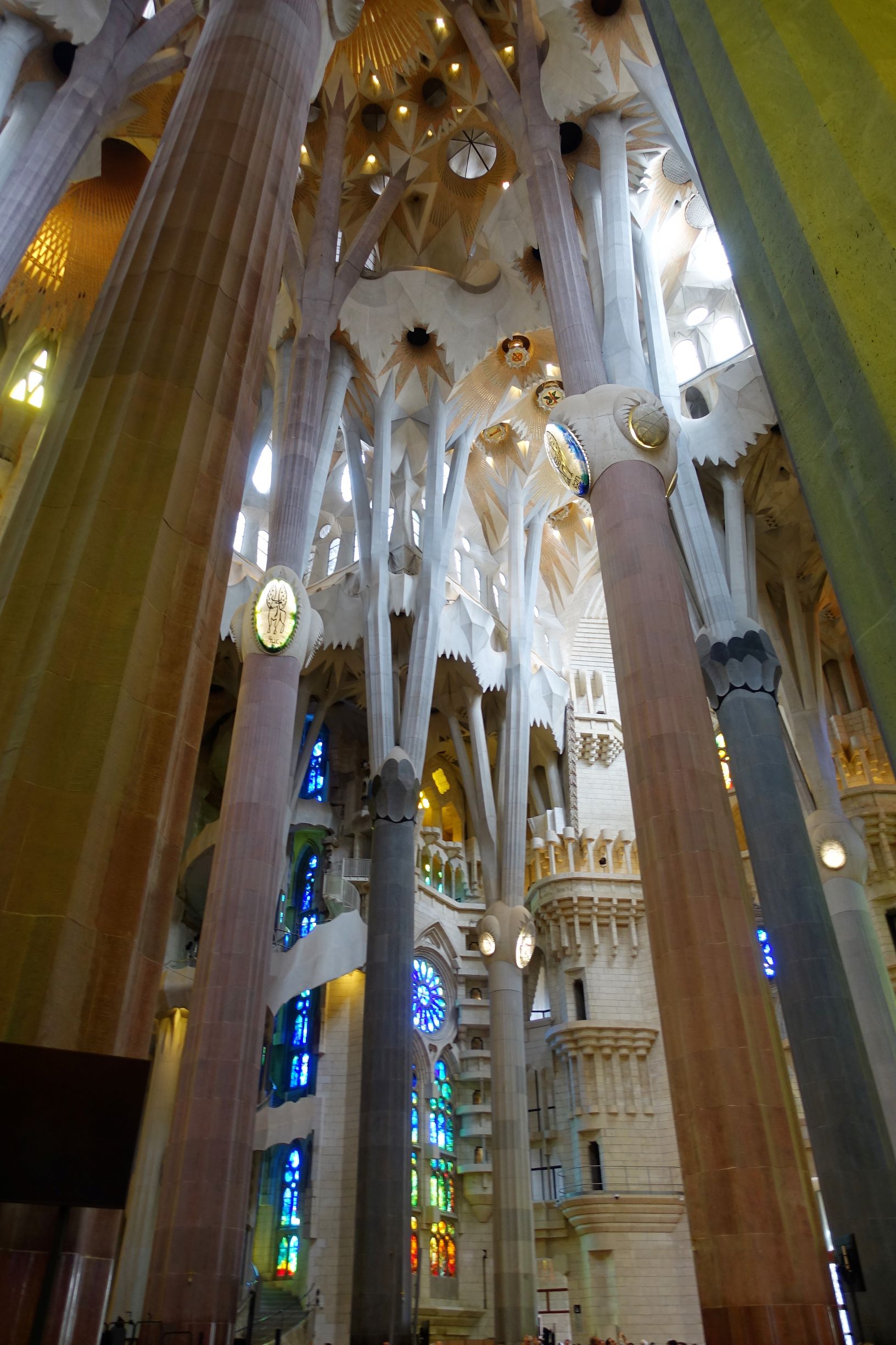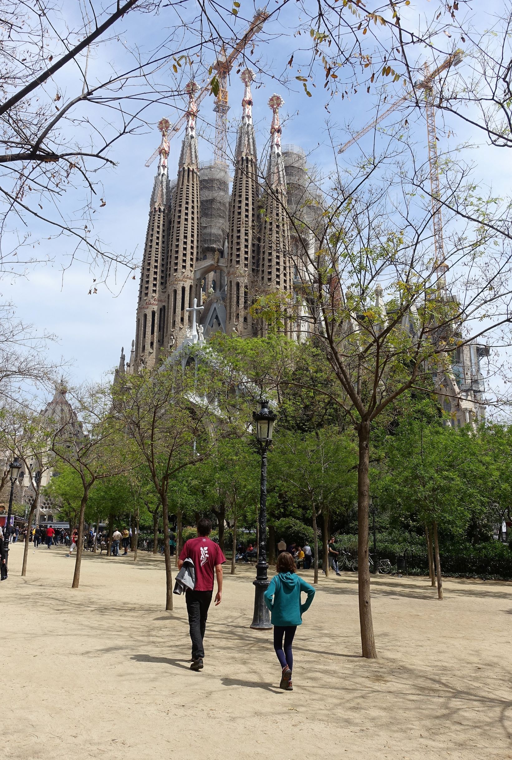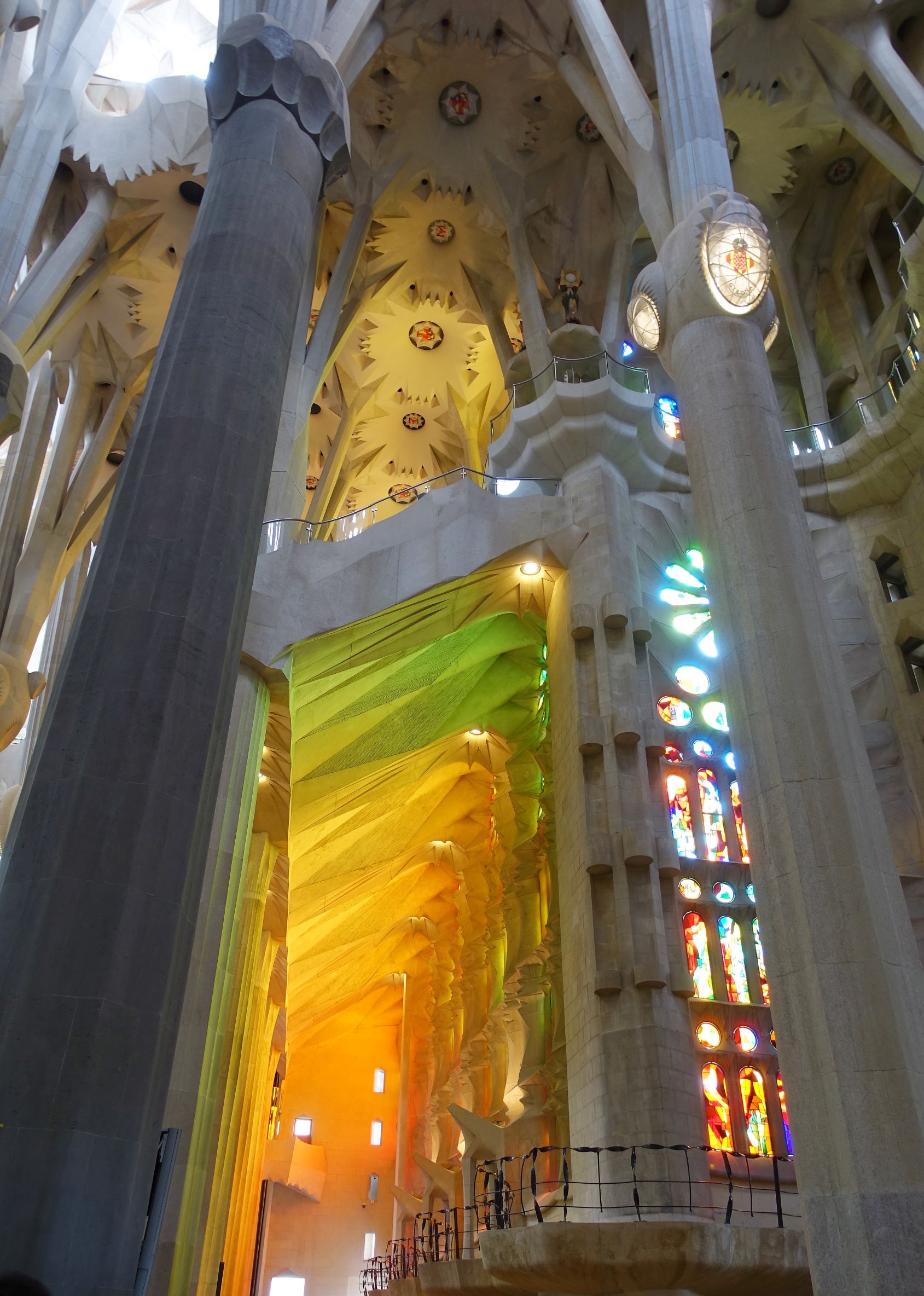 The next day we went to La Sagrada Familia. La Sagrada Familia is a humungous cathedral that has very, very tall towers and has lots of big columns inside. It is still in construction but they said it will probably be done in 7 years. There were coloured, stained glass windows that were pretty. The windows were green, blue, red and yellow and long shafts of coloured light come into the cathedral. The Sagrada Familia is my favourite cathedral and my favourite Gaudi building.