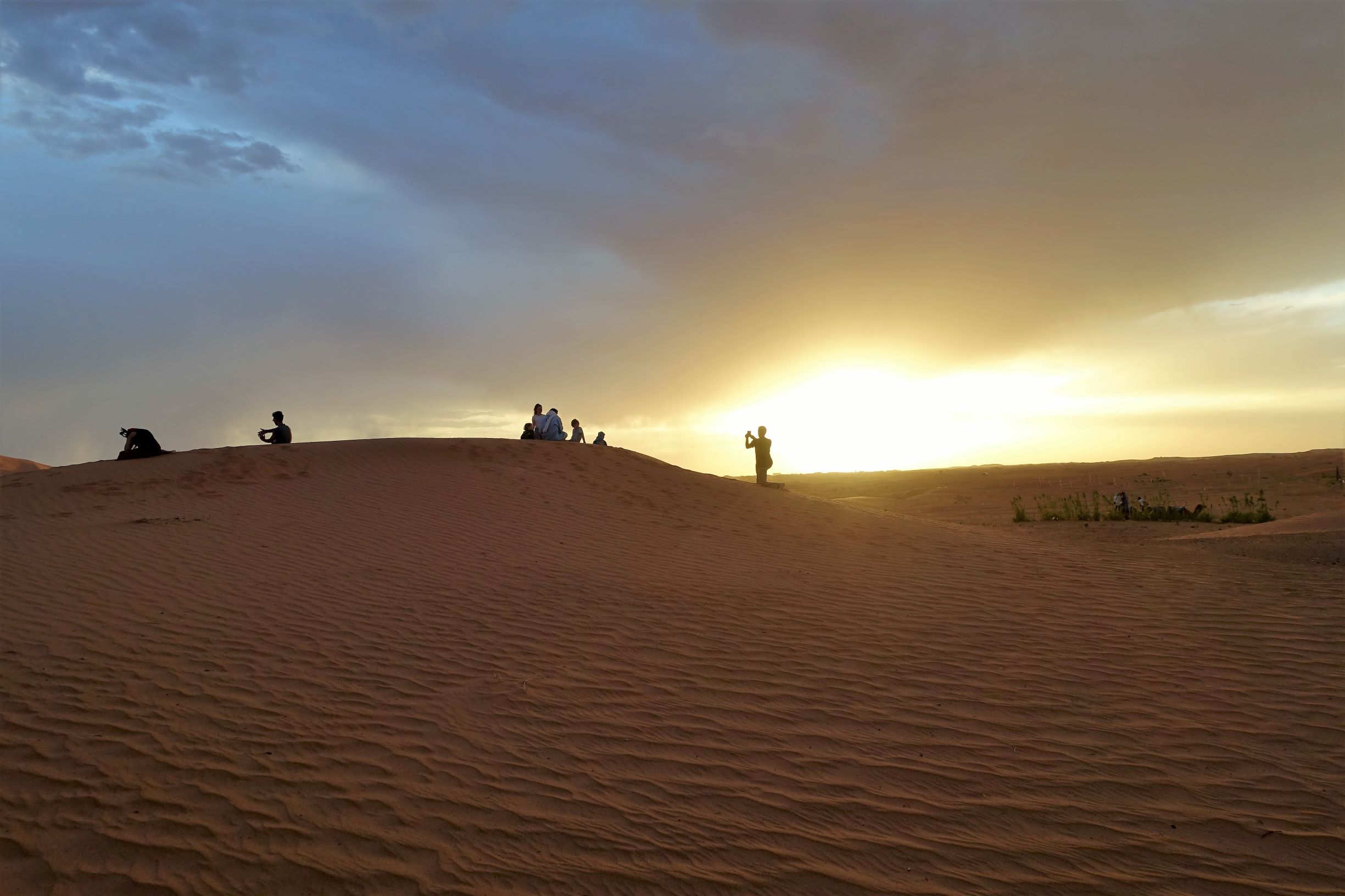 Our siesta was interrupted by a fun surprise that afternoon. We were playing in the camp when the adults told us there was going to be a sandstorm. Sure enough, when we looked out over the sand dunes, we could see sand flying towards us. We stayed out for a little longer, but had to tighten our turbans for the sand was blowing into our faces. Finally, when the wind started getting to us, we went inside. Unfortunately, we had to put screens all over the windows, so we couldn’t see out, but we did manage to catch a glimpse when my dad came stomping in to bring us some food. You might think that the howl and the rush of wind around the tent is scary, but it is really just another fun experience.