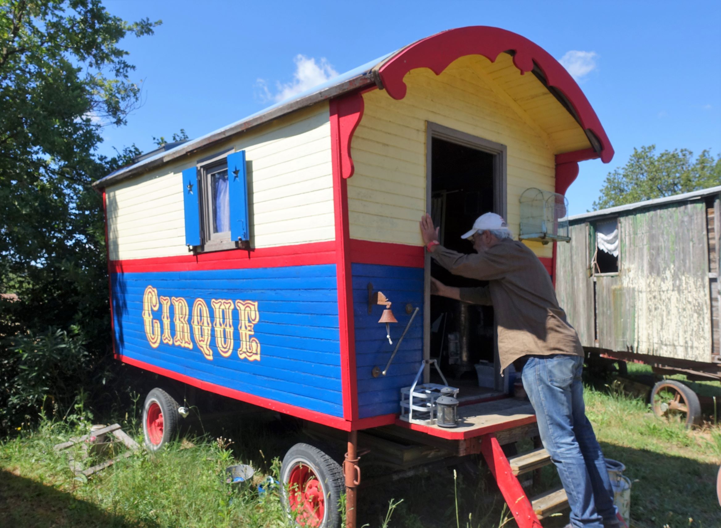 There was also another caravan that was used for a movie called “Chocolate”. They couldn’t use a Gypsy Caravan because they couldn’t fit the camera crew inside. So, Pierre had to make a bigger one with flaps at the sides to stick the cameras through.