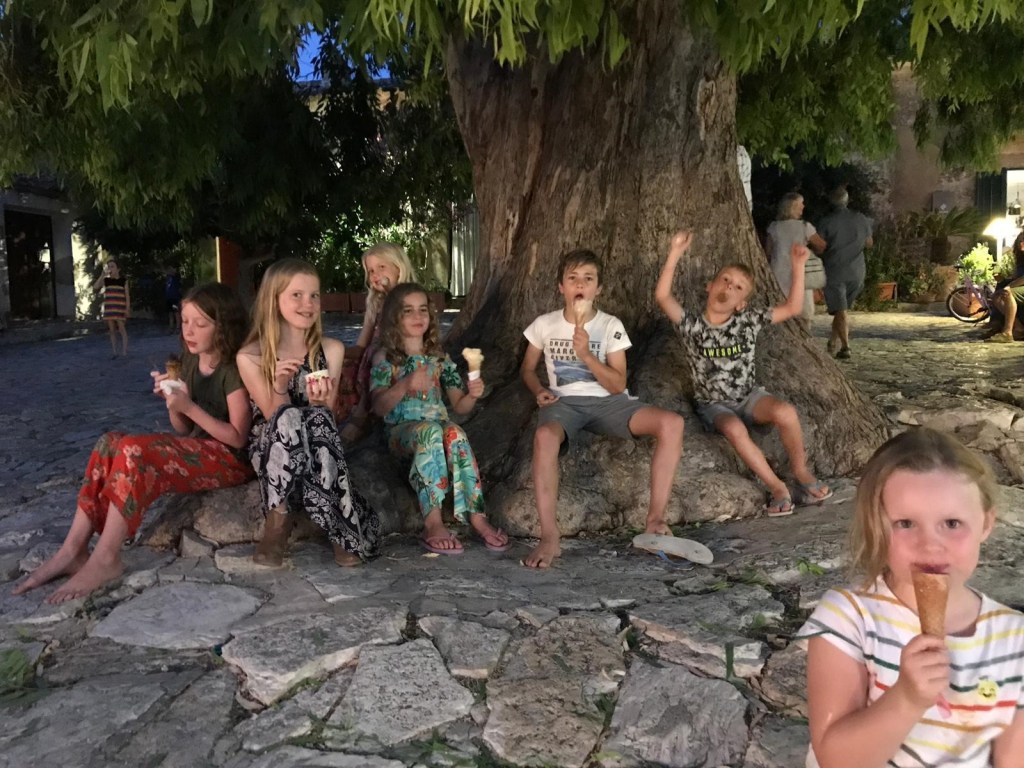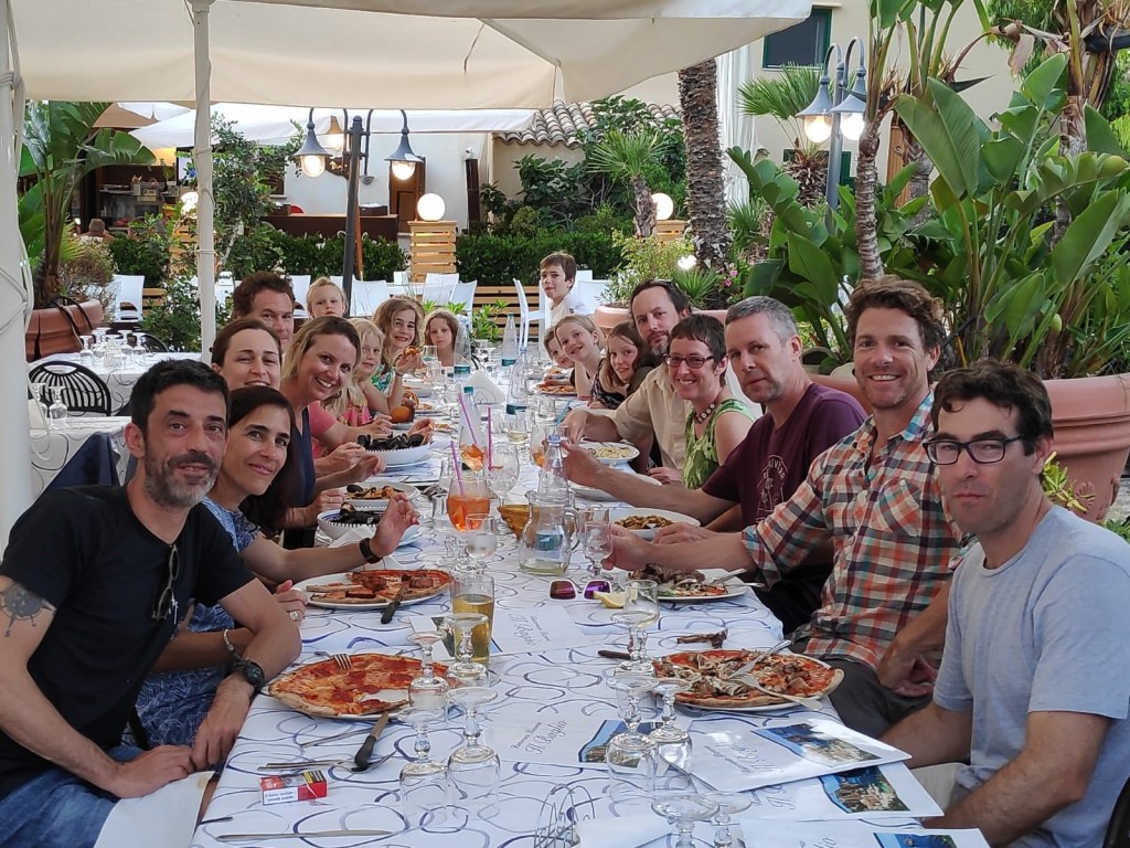 The Sicily crew having drinks and dinner in the Baglio at Scopello.Followed by ice cream, of course.And it’s party time on the terrace!