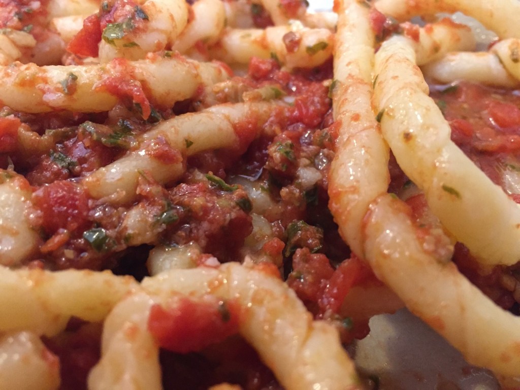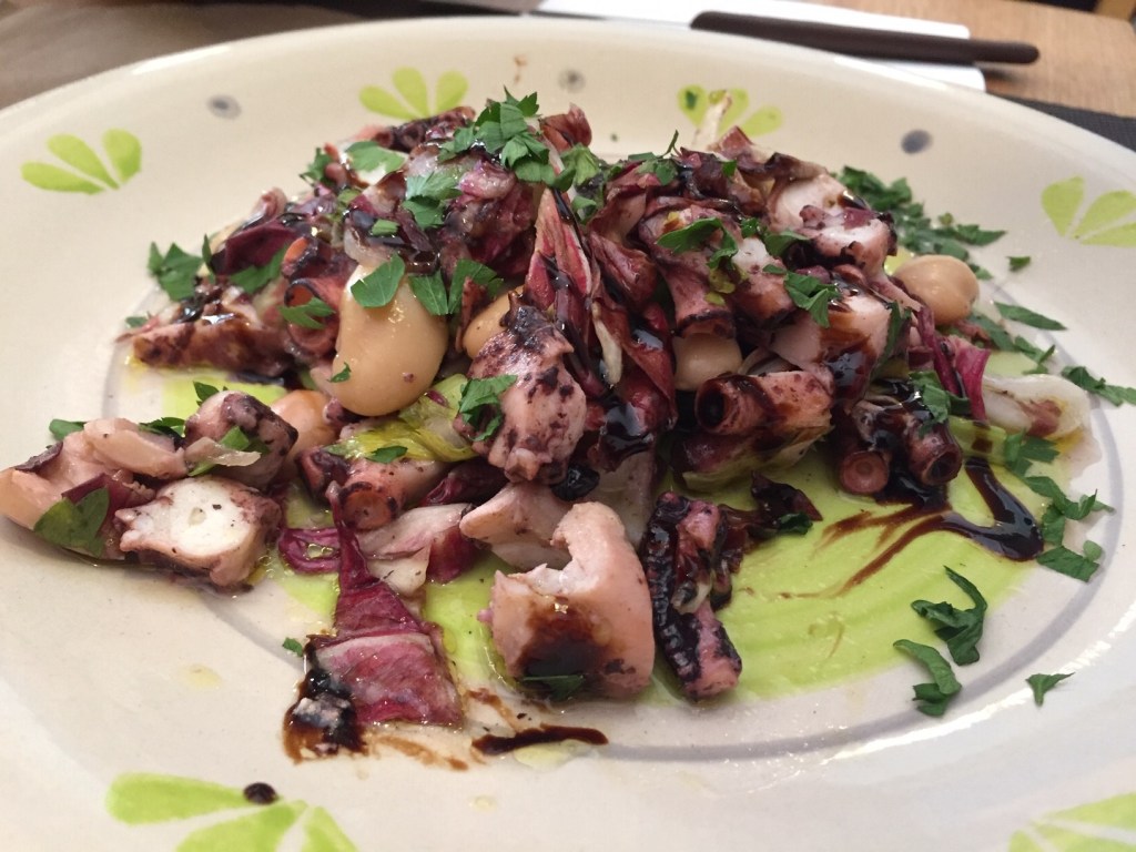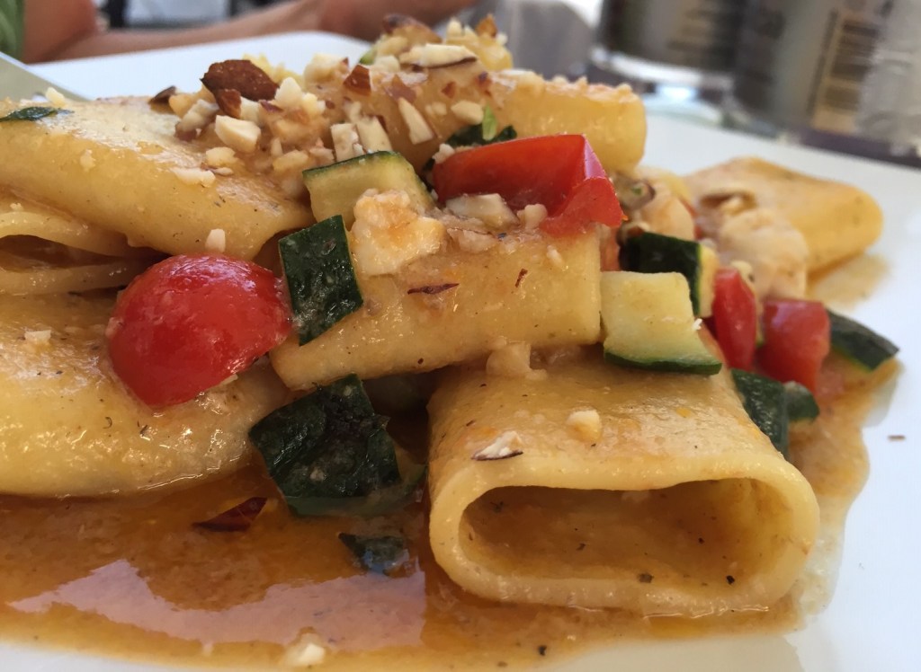 Lunch in Trapani: octopus salad and busiate pasta with Trapani pesto.