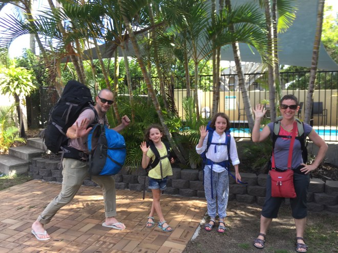 Two years of anticipating this moment and when it finally arrives all goes more smoothly than my imaginings. The kids are excited and positive, James and I are calm and focused. Apart from the mad rush to vacate the motel room when the taxi arrives slightly early, that is. Perhaps we aren’t as calm as we think…