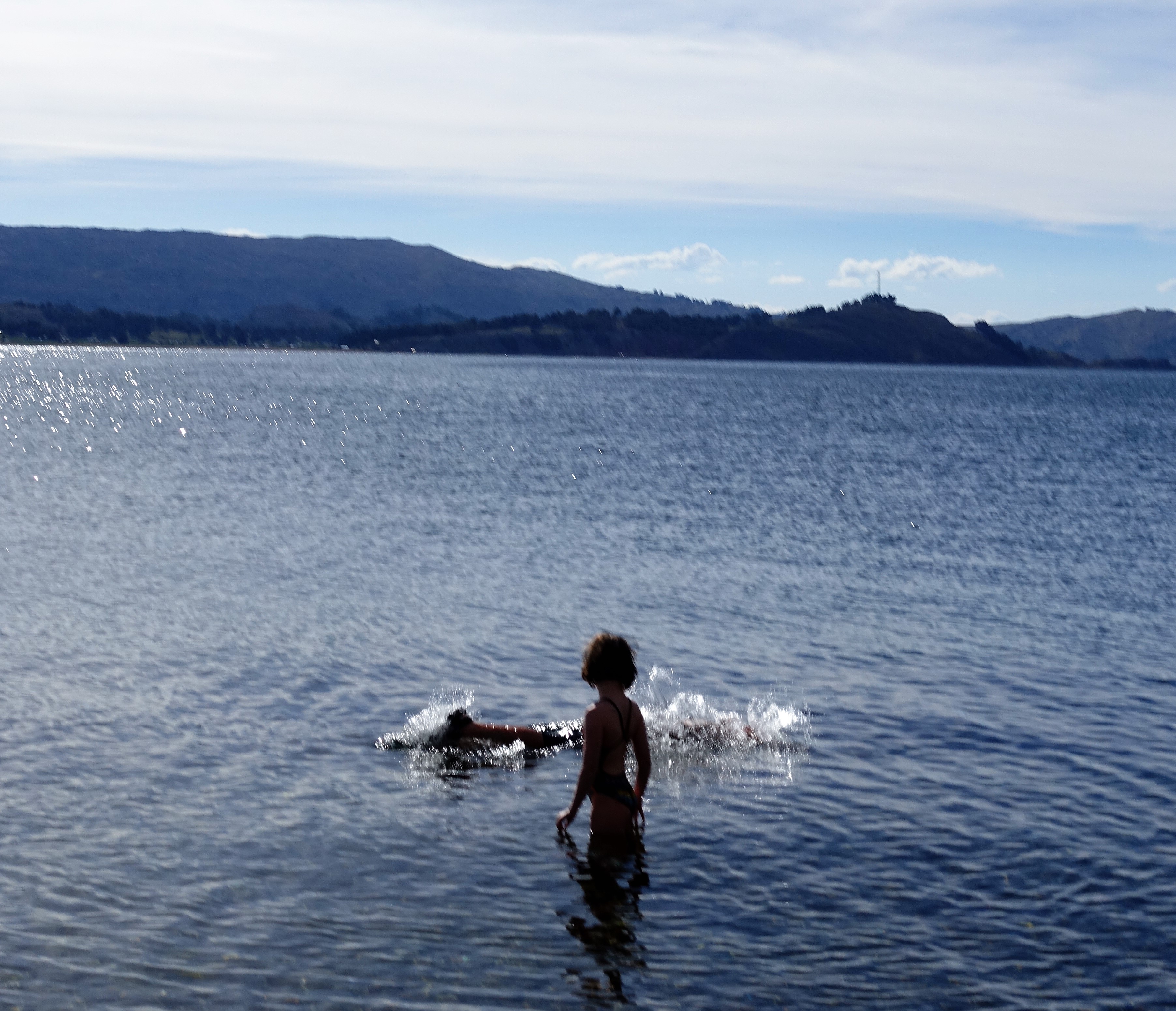 The first day we went swimming in Lake Titicaca the highest navigable lake in the world, of 4063metres above sea level. The temperature of the water was 14 degrees so it took us a little while before we put our heads under. It was freezing, but I bet Maille found it fun watching me hallucinate.