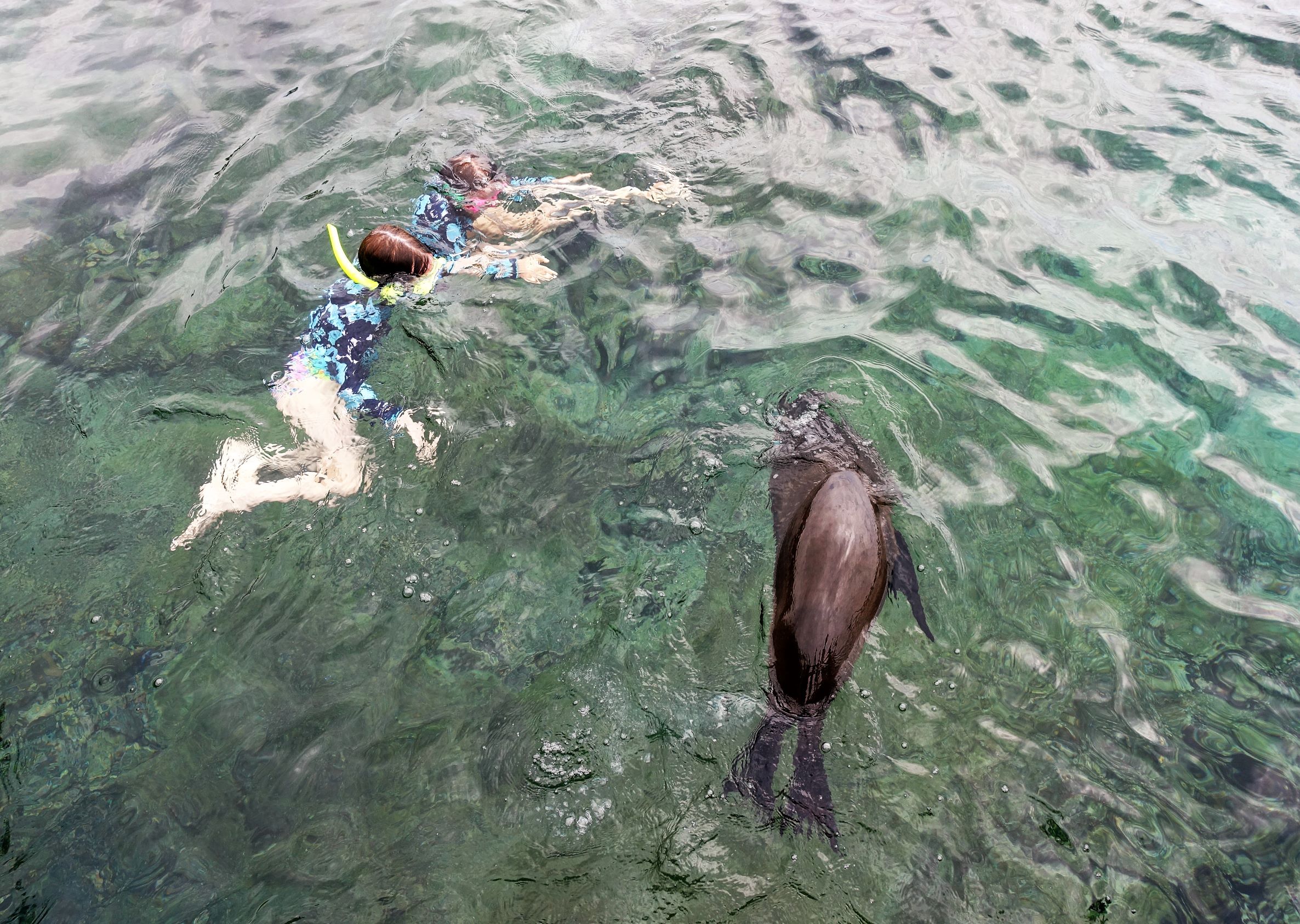 It chased me and Eliane around. It twirled around in the water and showed off its tricks. We copied it. I felt a bit scared when it chased me. But I also felt happy and excited. This was my favourite experience in the Galapagos. Maille.