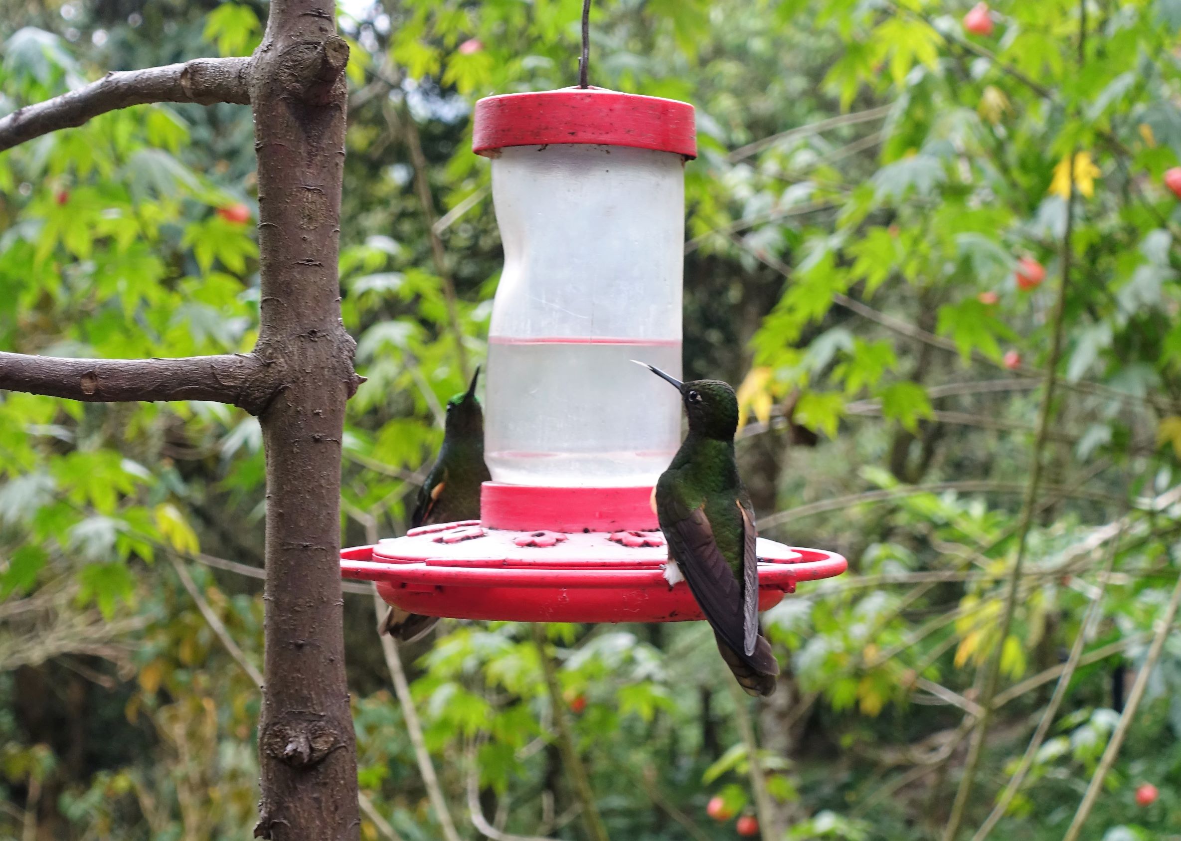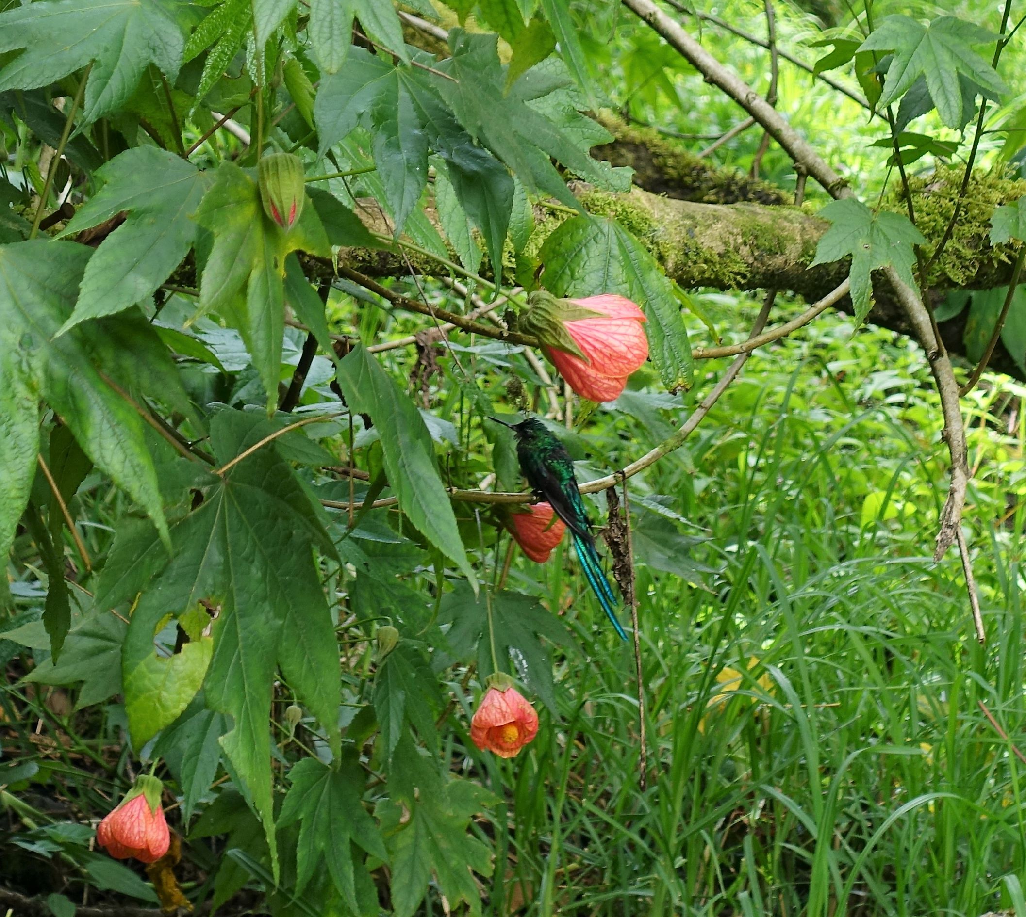 After winding uphill past the palms and down into the next valley, we detoured to a hummingbird sanctuary nestled in the rainforest. The place was heaving with people so we didn’t stay long, but we managed to see at least two types of hummingbirds – including a spectacular long-tailed bird – and even got some pics!
