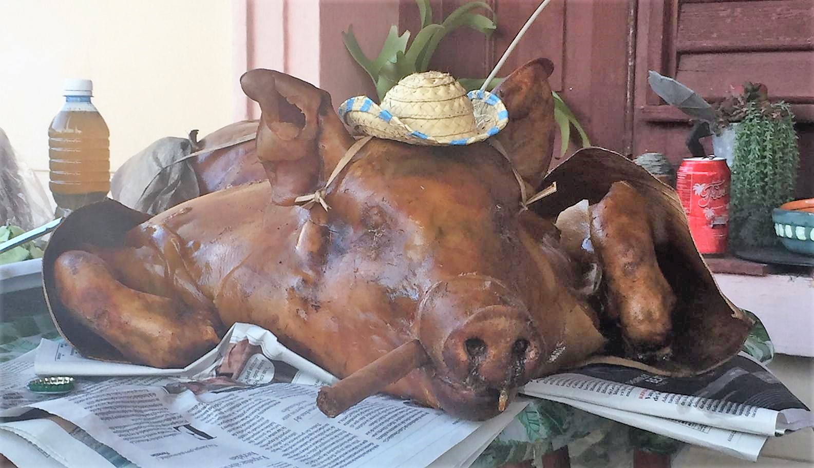 The pig! We were so lucky to be invited to a traditional Cuban meal on our first night in Cuba. This ranks as one of the most memorable meals of my life. Deceptively simple, it consisted of arroz negro (i.e. rice and beans), a coleslaw-like salad, steamed or boiled cassava and that completely delectable, melt-in-the mouth pork, with its crunchy/chewy crackling… Although the pork was undoubtedly the star of the show all the other elements were so well-cooked and tasty that we just kept eating and eating until we couldn’t stuff another bite in.