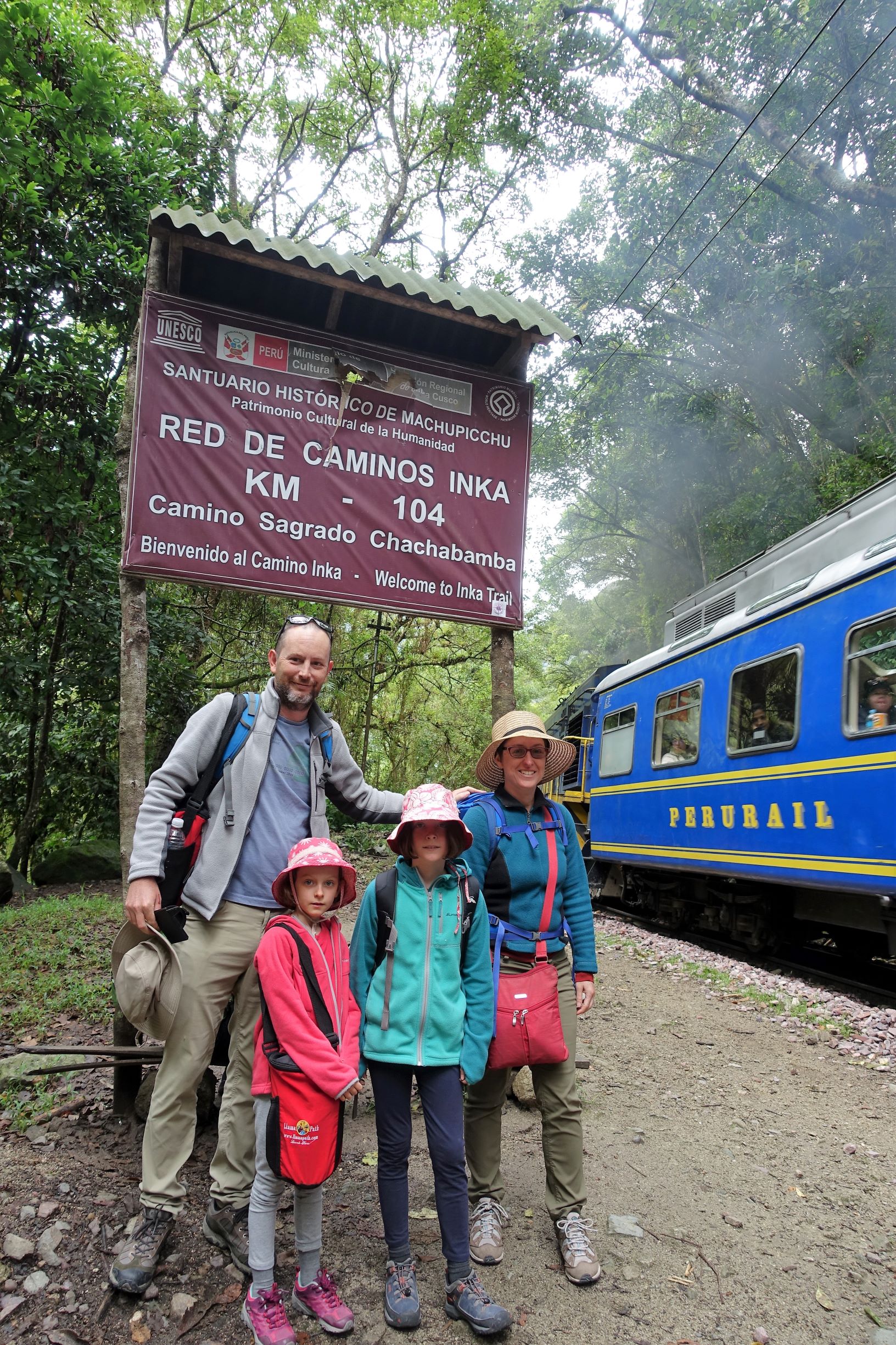 We joined four other travelers and our guide Will at 5.00am in Cusco and drove around 1 1/2 hours through the Sacred Valley to the train station at Ollantaytambo. The train winds it way along the valley floor to Machu Picchu Pueblo (formerly known as Aguas Calientes). It is a spectacular trip past snow-capped peaks and through a gradually changing landscape that becomes more and more jungle-like. Machu Picchu is essentially located at the start of the Peruvian Amazon jungle. But we didn’t travel that far – we got off the train early at stop no.104 to begin our hike.