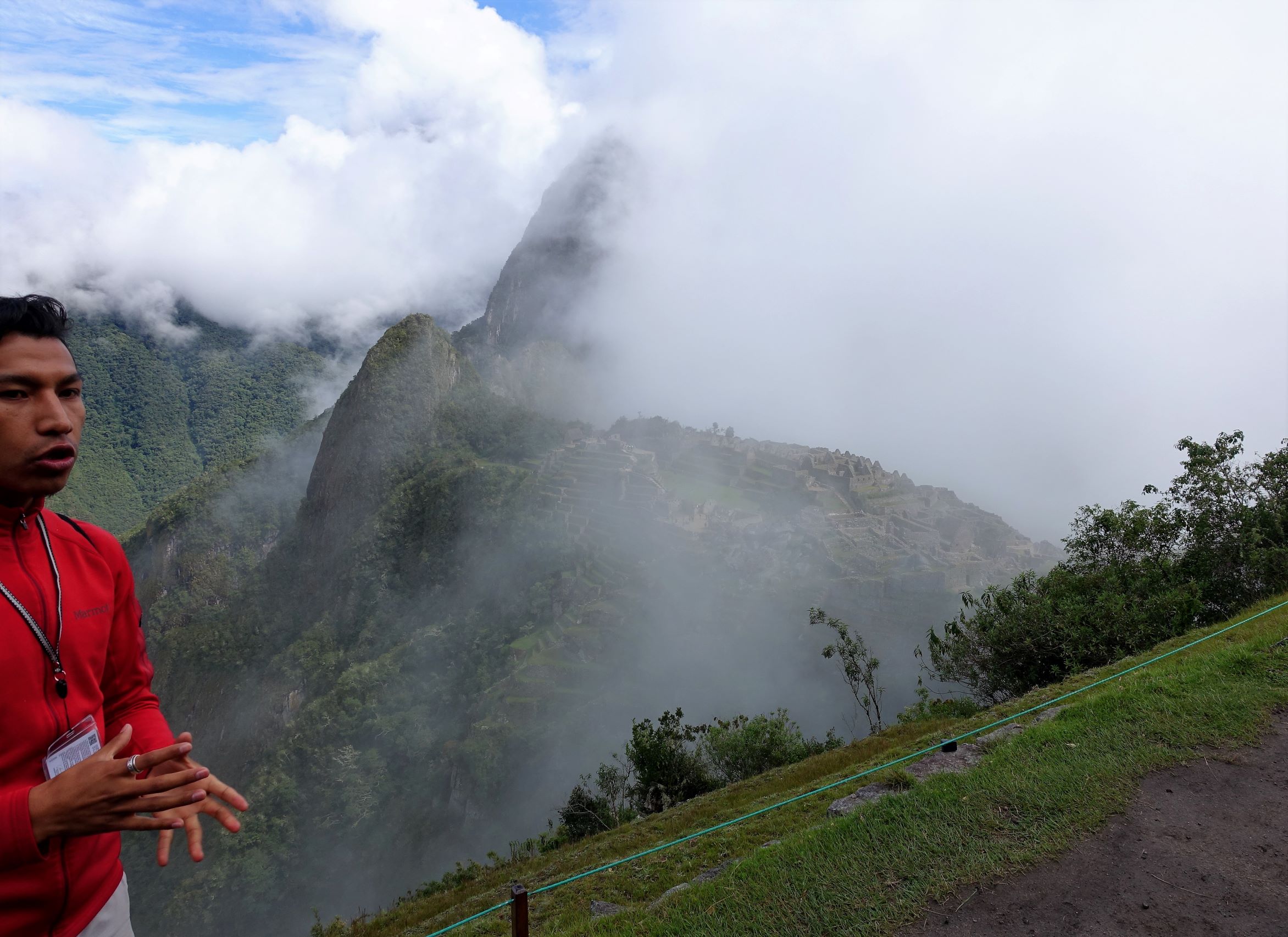 Will lecturing in front of a slowly emerging view of Machu PicchuFinally revealed in all its glory, Machu Picchu is truly impressive