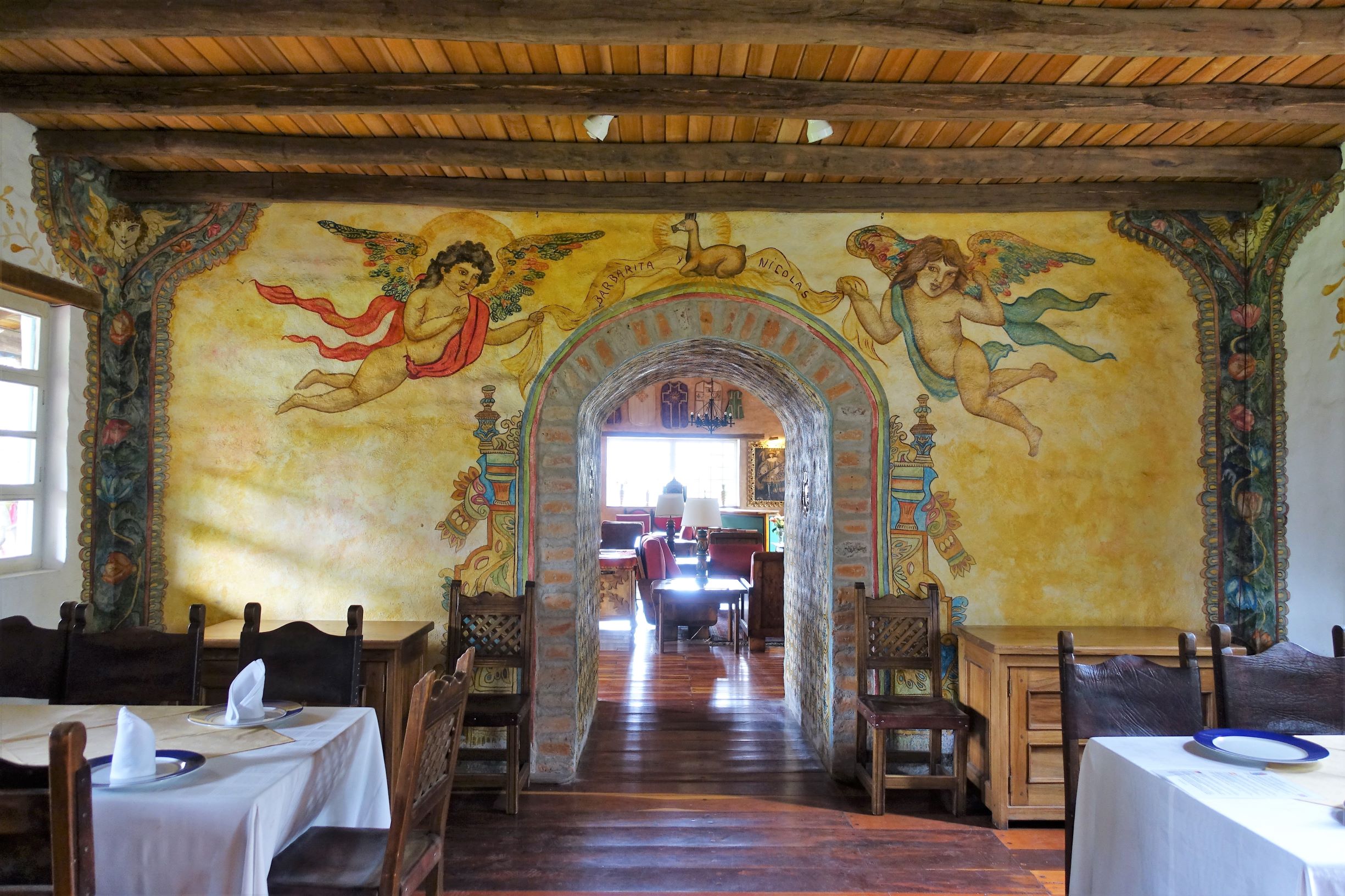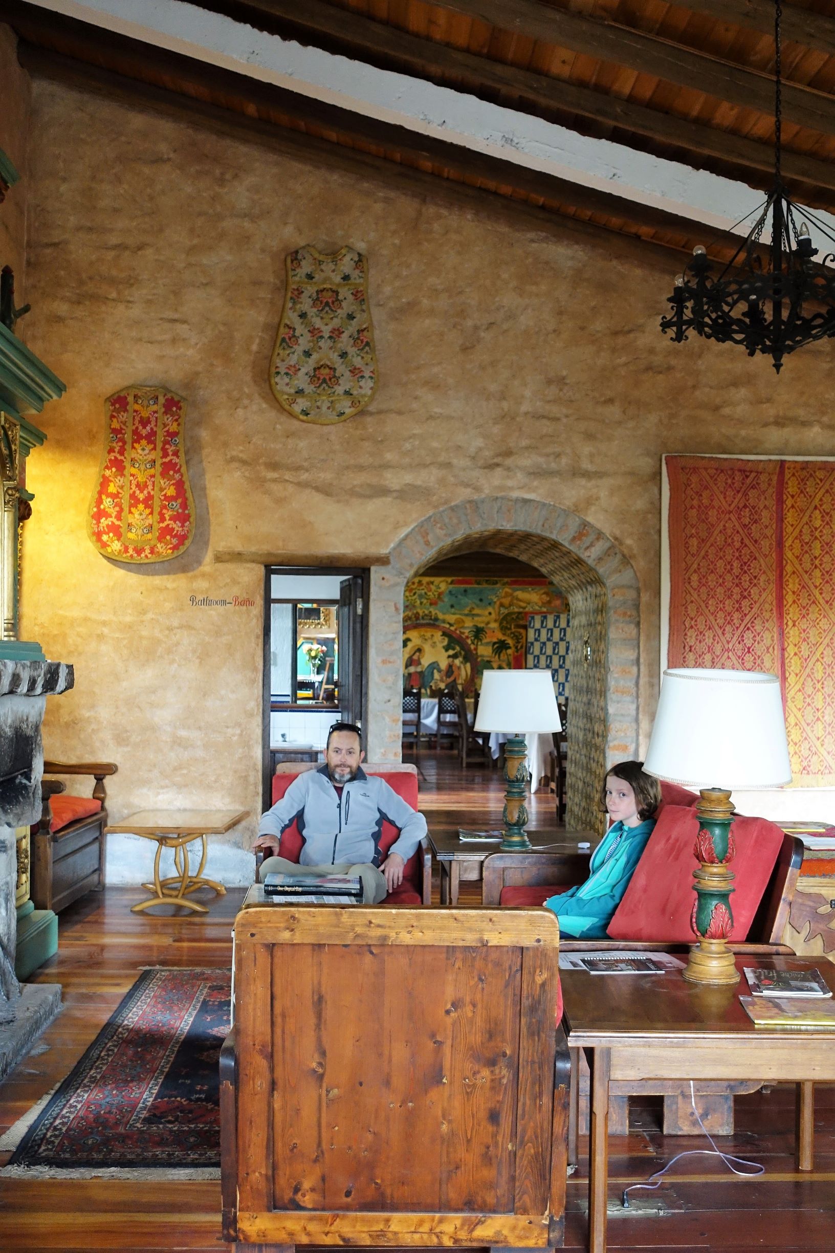 Entering the monasteryOne of the more illustrious former Abbots View from the towerFormal sitting room in the monastery areaSitting room looking through to dining room. Curiously enough, we virtually had the whole huge place to ourselves, only seeing other people occasionally near Reception or at mealsIt was kind of like a ghost hotel…with fabulous muralsfrankly, I loved it!Our 2-bedroom suite with a fireplace that was lit each night while we enjoyed a 3-course meal in the dining room, in front of yet another roaring fire