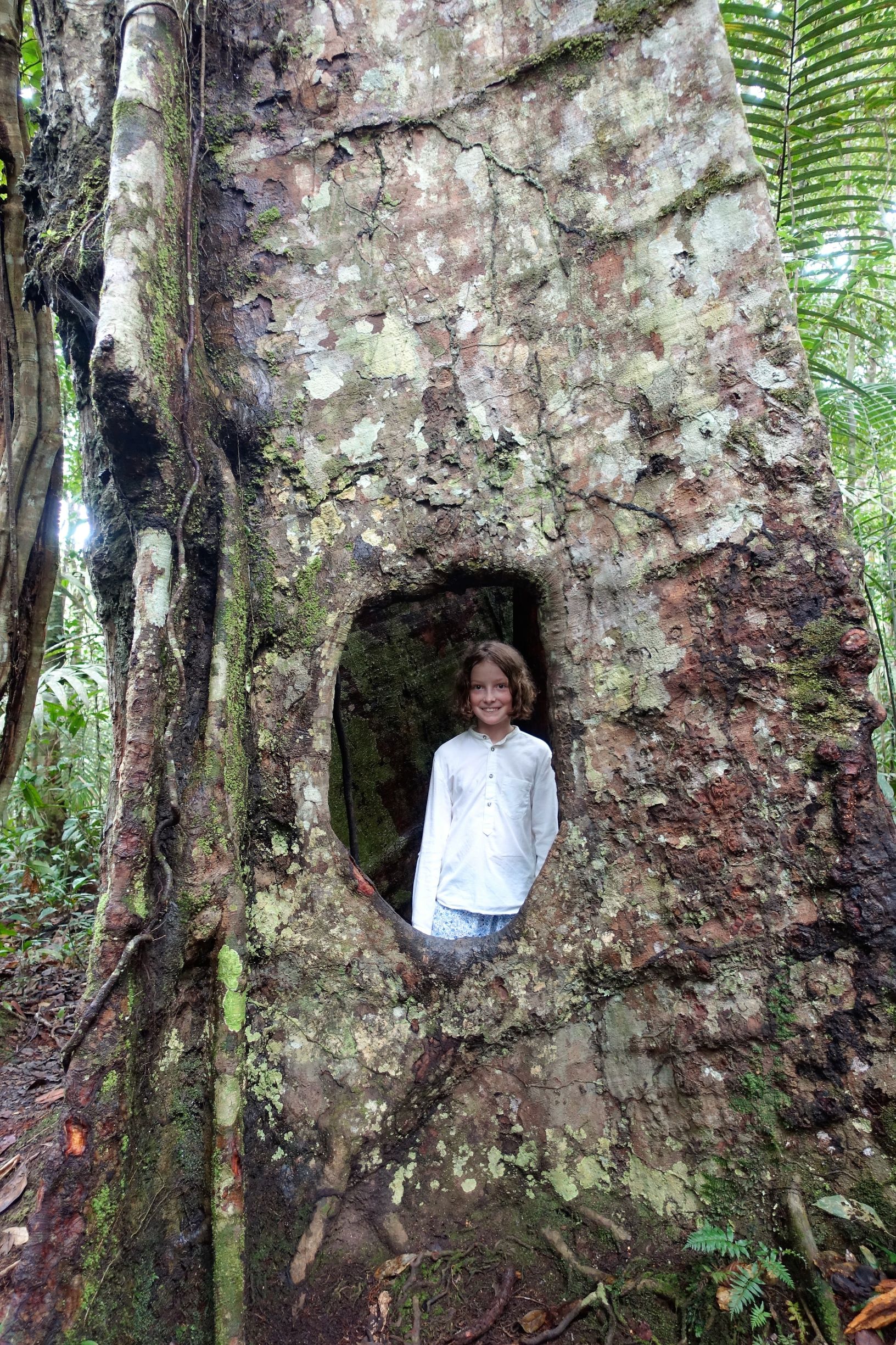 The walk through the rainforest held its own adventure, with the path sometimes merging with the creek so that we had to pick our way through to avoid wet feet, and with many fragile-looking swinging bridges to cross.