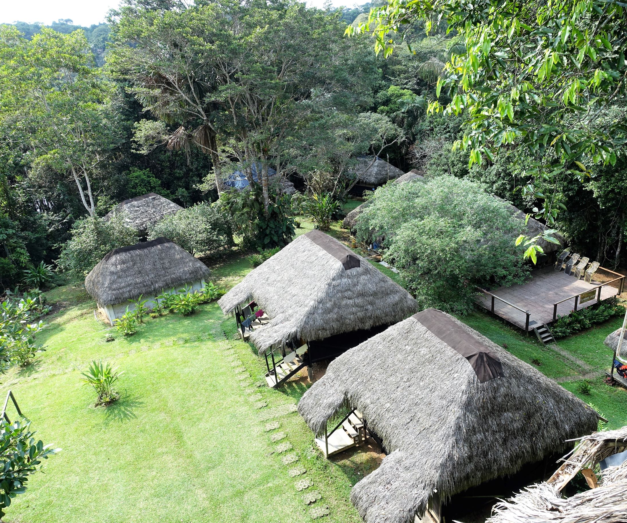 Cuyabeno lodge is one of only two lodges perched in prime position right on the edge of Laguna Grande. It consists of a number of thatched huts in a garden on a small hill, surrounded by jungle and water. The standard huts (where we stayed) are fairly basic but do have some screens, private bathrooms with flushing toilets and hot water, mosquito nets on the beds and low-voltage electricity – to be used sparingly as it’s solar powered. There is no air conditioning, wifi or fans and small animals can and will invade the huts from time to time. There is a separate hut where you can lounge in hammocks and charge your devices during the day. The restaurant hut is where everyone meets for (delicious) meals and hangs out when it rains hard. It’s open to the elements and the sides can get a bit damp, but you can sit and chat or play games and watch troops of monkeys passing through during the day and fireflies flitting between the trees at night.